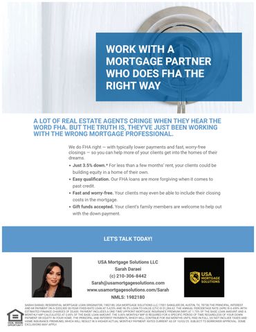 Our Mortgage Brokerage is all about working with our Realtor Partners to find ways to help them sell more homes. Whether its co-branding, marketing, staging luxury/exotic cars, special lender rates, or whatever we need to do to get your buyer into a home or your listing sold!