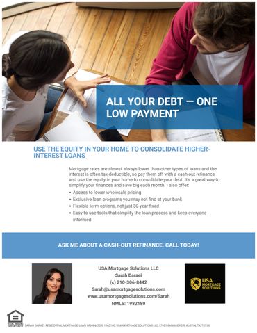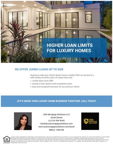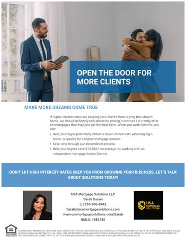 Copyright © 2025 USA Mortgage Solutions LLC - All Rights Reserved. USA Mortgage Solutions LLC NMLS# 2732954 | CONSUMERS WISHING TO FILE A COMPLAINT AGAINST A COMPANY OR A RESIDENTIAL MORTGAGE LOAN ORIGINATOR SHOULD COMPLETE AND SEND A COMPLAINT FORM TO THE TEXAS DEPARTMENT OF SAVINGS AND MORTGAGE LENDING, 2601 NORTH LAMAR, SUITE 201, AUSTIN, TEXAS 78705. COMPLAINT FORMS AND INSTRUCTIONS MAY BE OBTAINED FROM THE DEPARTMENT’S WEBSITE AT WWW.SML.TEXAS.GOV. A TOLL-FREE CONSUMER HOTLINE IS AVAILABLE AT 1-877-276-5550. THE DEPARTMENT MAINTAINS A RECOVERY FUND TO MAKE PAYMENTS OF CERTAIN ACTUAL OUT OF POCKET DAMAGES SUSTAINED BY BORROWERS CAUSED BY ACTS OF LICENSED RESIDENTIAL MORTGAGE LOAN ORIGINATORS. A WRITTEN APPLICATION FOR REIMBURSEMENT FROM THE RECOVERY FUND MUST BE FILED WITH AND INVESTIGATED BY THE DEPARTMENT PRIOR TO THE PAYMENT OF A CLAIM. FOR MORE INFORMATION ABOUT THE RECOVERY FUND, PLEASE CONSULT THE DEPARTMENT’S WEBSITE AT WWW.SML.TEXAS.GOV. - NMLS Consumer Access / Legal Disclaimer - This information is not intended to be an indication of loan qualification, loan approval or commitment to lend. Other limitations may apply. This site is not authorized by the New York State Department of Financial Services. No mortgage loan applications for properties located in the state of New York will be accepted through this site.